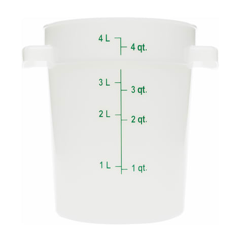 This 4 quart StorPlus™ round food storage container feature an ergonomic design and is built to last! This container resists staining, breaking and chipping for long-lasting restaurant use.