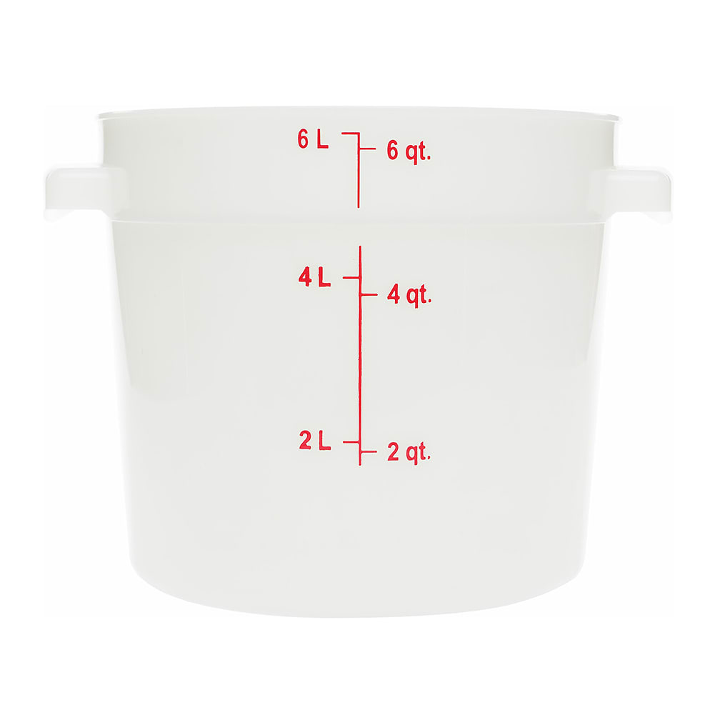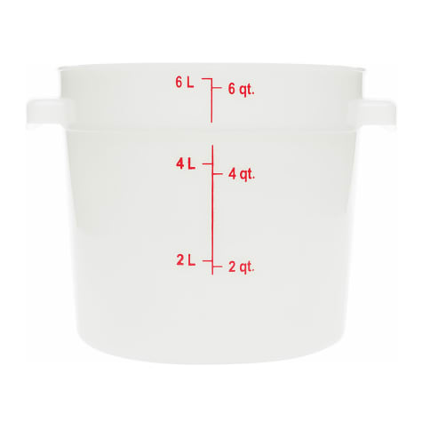 This 6 quart StorPlus™ round food storage container feature an ergonomic design and is built to last! This container resists staining, breaking and chipping for long-lasting restaurant use.
