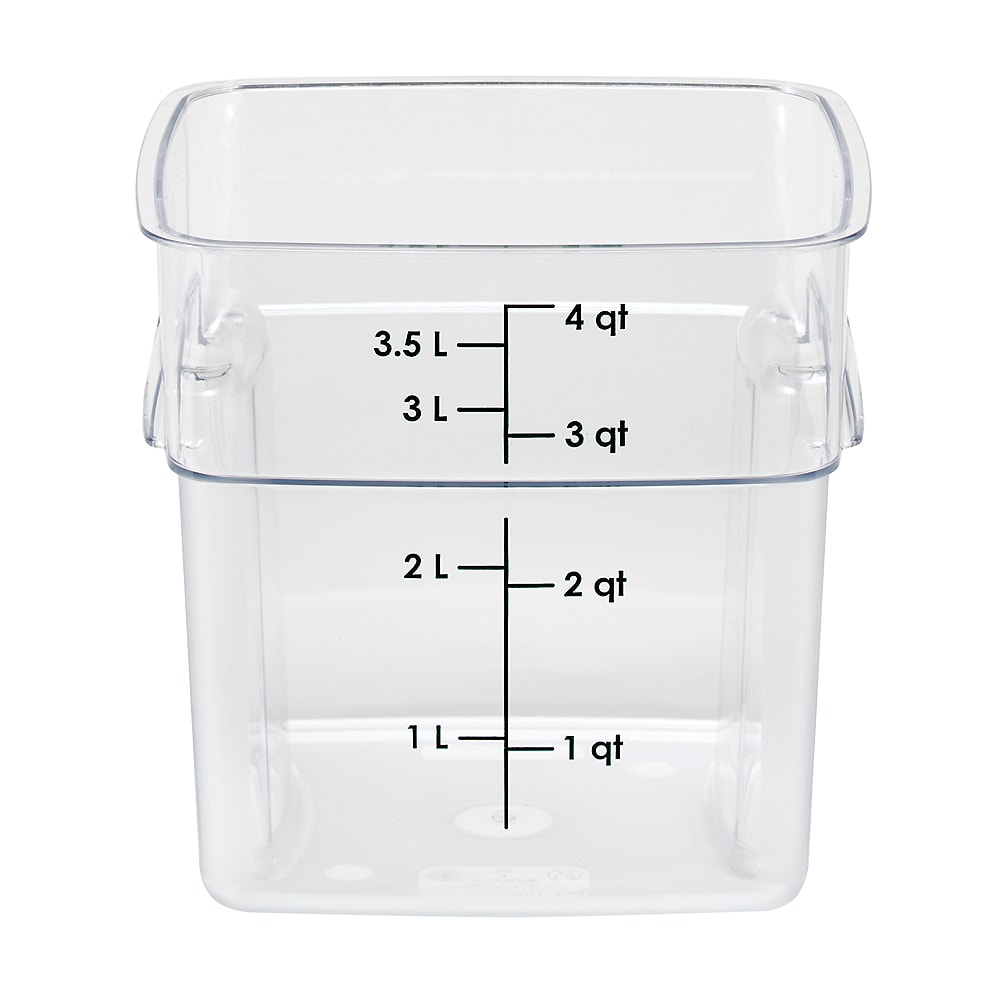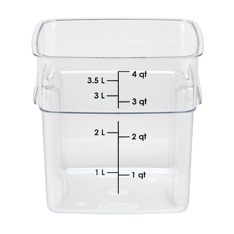 You will love the new CamSquares® FreshPro Series Food Storage Containers from Cambro®. These containers are made from durable Camwear® and feature molded-in, recessed handles so the containers take up less space than traditional storage options. The FreshPro's curved corners and textured grip enable safer, four-sided pouring and easier handling.