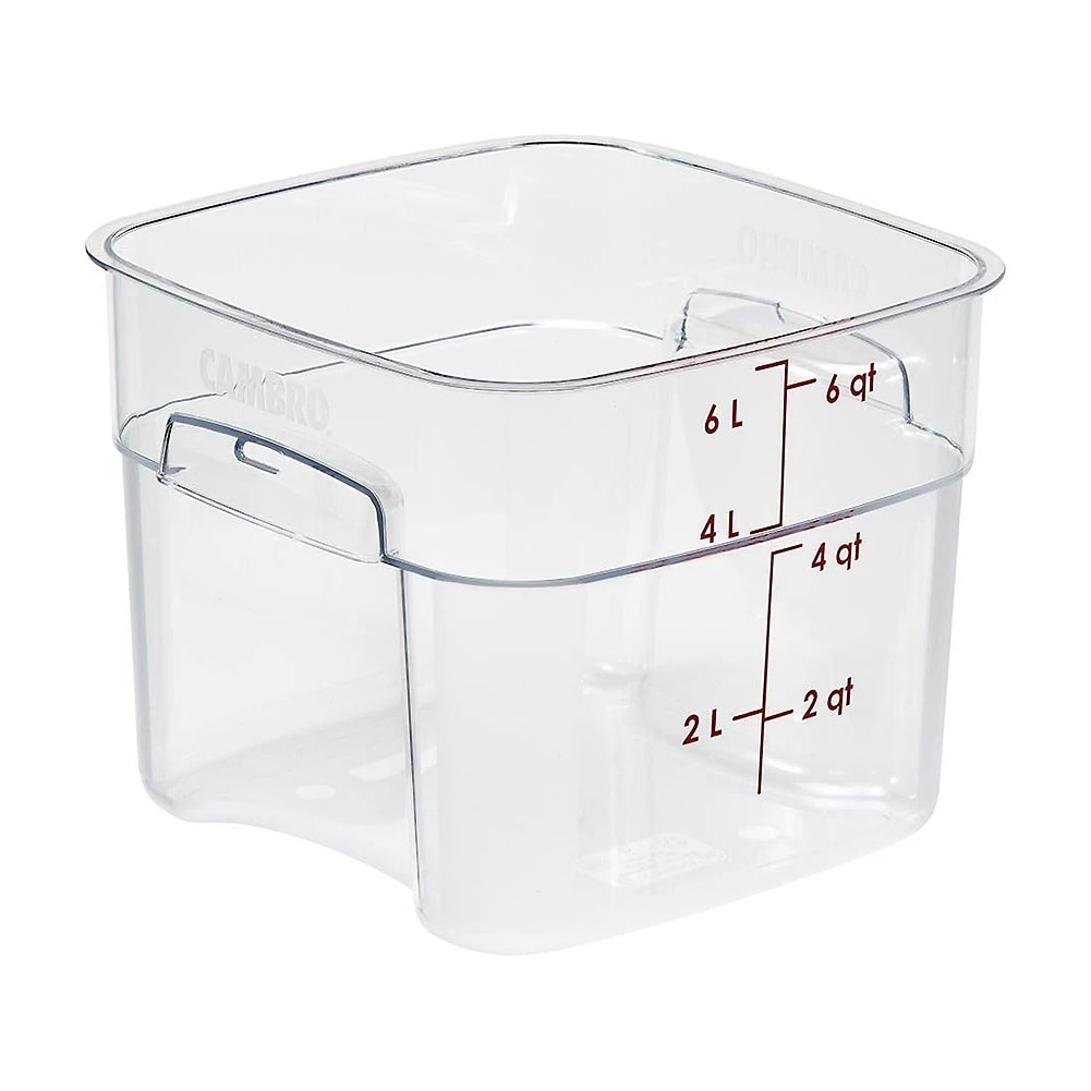 You will love the new CamSquares® FreshPro Series Food Storage Containers from Cambro®. These containers are made from durable Camwear® and feature molded-in, recessed handles so the containers take up less space than traditional storage options. The FreshPro's curved corners and textured grip enable safer, four-sided pouring and easier handling.