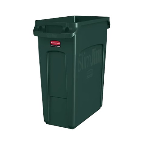 This 16 gallon green Slim Jim® container from Rubbermaid features venting channels and offers uncompromised performance in constrained spaces.