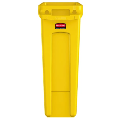 This Rubbermaid 23 gallon trash can is able to fit in small places and is great in rooms where space is limited. The smooth, contoured edges make it easy to keep clean and the increased foot petal clearance makes it easier to use. It meets OSHA and OBRA standards for worker and environmental safety.
