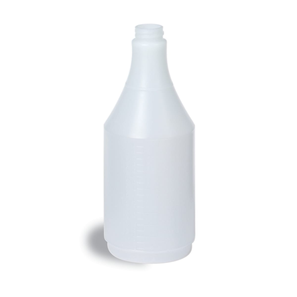 This natural‐colored 24 oz spray bottle features a center neck and molded‐in graduations. It can use standard 28/400 size trigger sprayers.