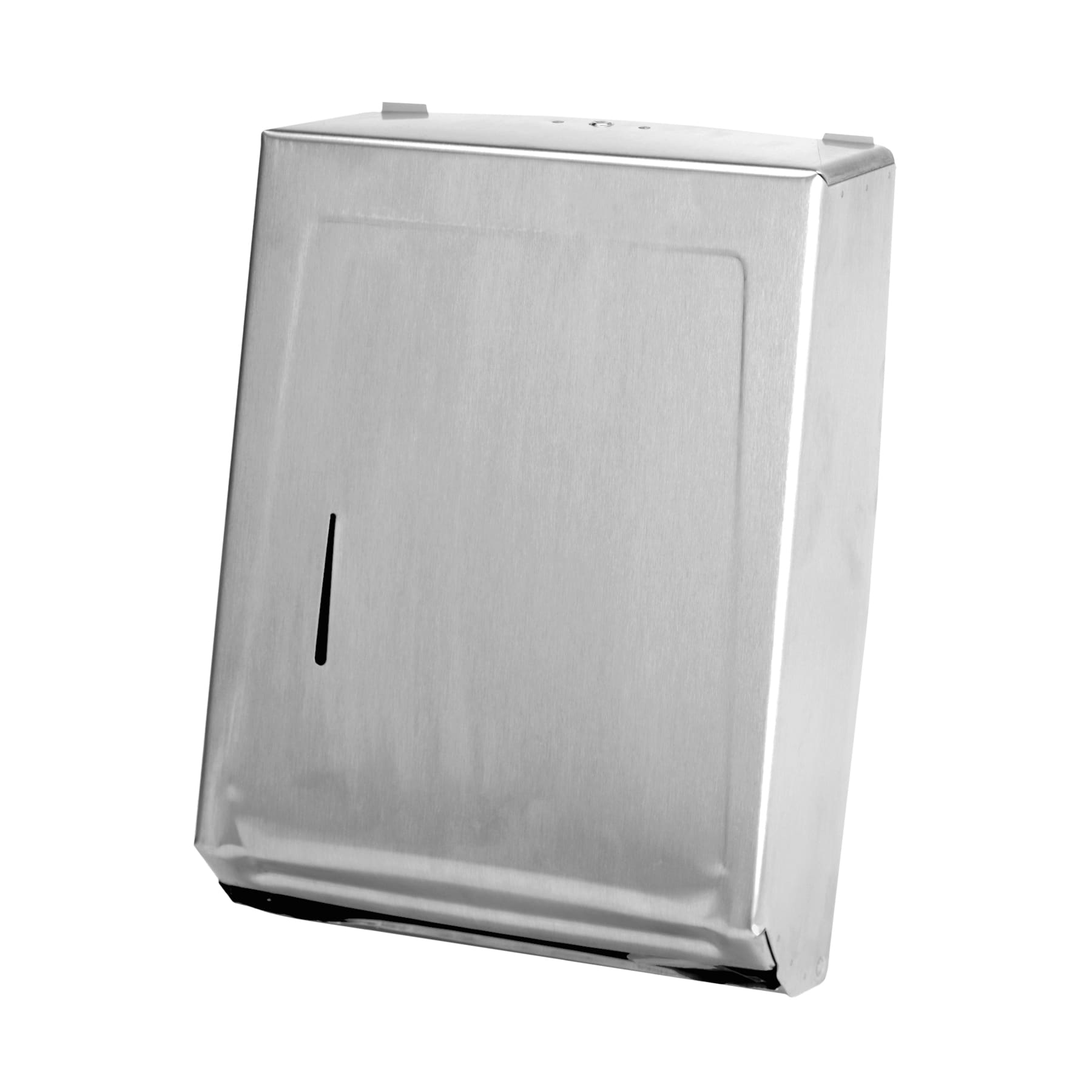 This 15 combo paper towel cabinet is made of chrome‐plated heavy‐gauge steel and can hold either multifold or C‐fold towels.