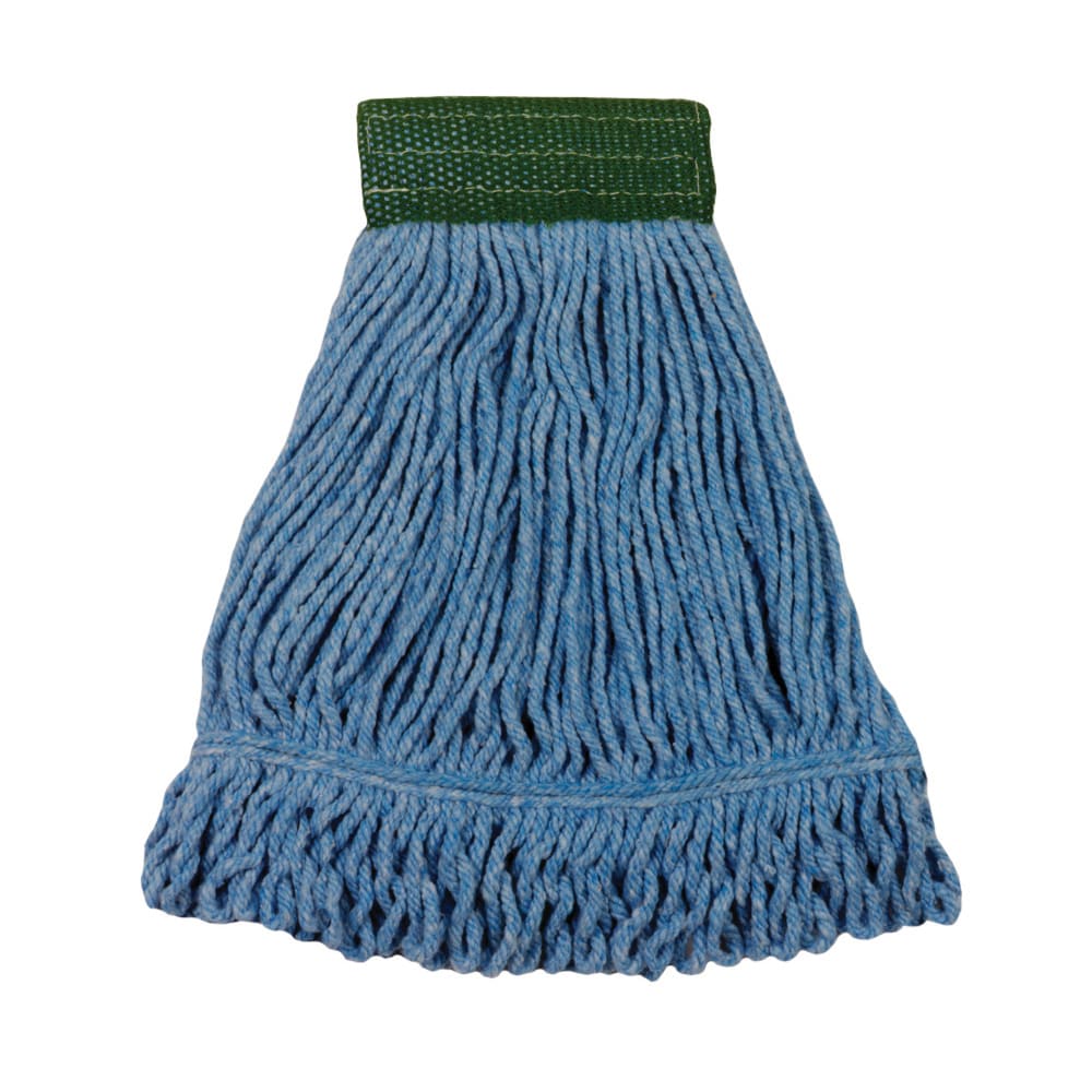 This large, blue looped‐end mop head features a wide headband and the economical blended fibers of the Bulldog line. It is a good choice for upgrading from a cut‐end mop for general cleaning.