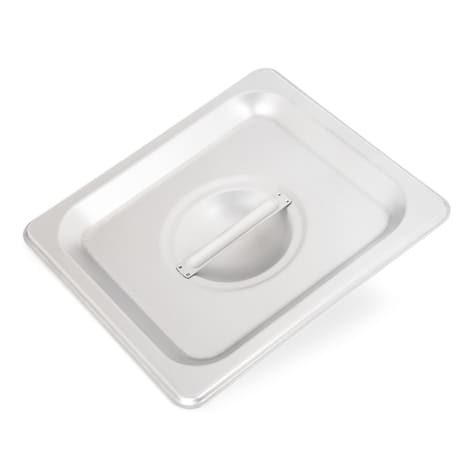 This DuraPan™ stainless steel steam table pan cover from Carlisle® is 1/6 size and features a concave handle which allows for smooth, comfortable grasping.
