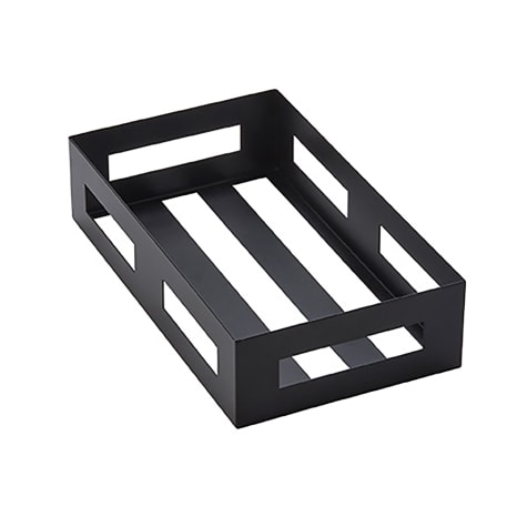 The American Metalcraft BTH1 is a versatile Black Twilight crate made from durable stainless steel with a sleek black finish. Measuring 9-1/4 inches in length, 5-3/8 inches in width, and 2-1/4 inches in height, this crate is designed to seamlessly integrate with the BuffetBoost Warming Block, ensuring your food stays at the perfect temperature. It features built-in handles for easy transport, which also provide access to the warming block's control panel. Ideal for organizing fruits, showcasing baked goods, or serving as a modern riser, this crate adds a contemporary touch to any buffet or dining setting.
