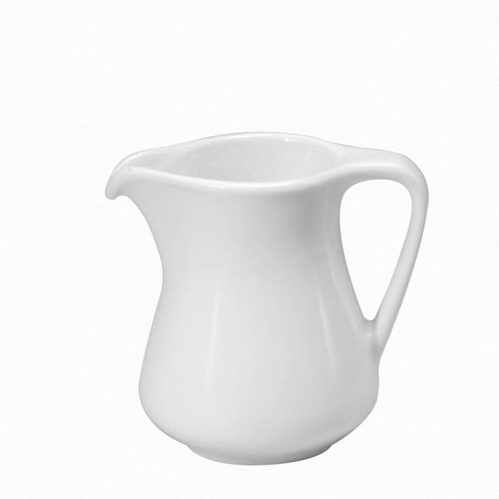 The beauty of this Royale Undecorated 4 ounce creamer will certainly catch the attention of your guests. It features beautiful bright white porcelain construction and is perfect for banquet operations.