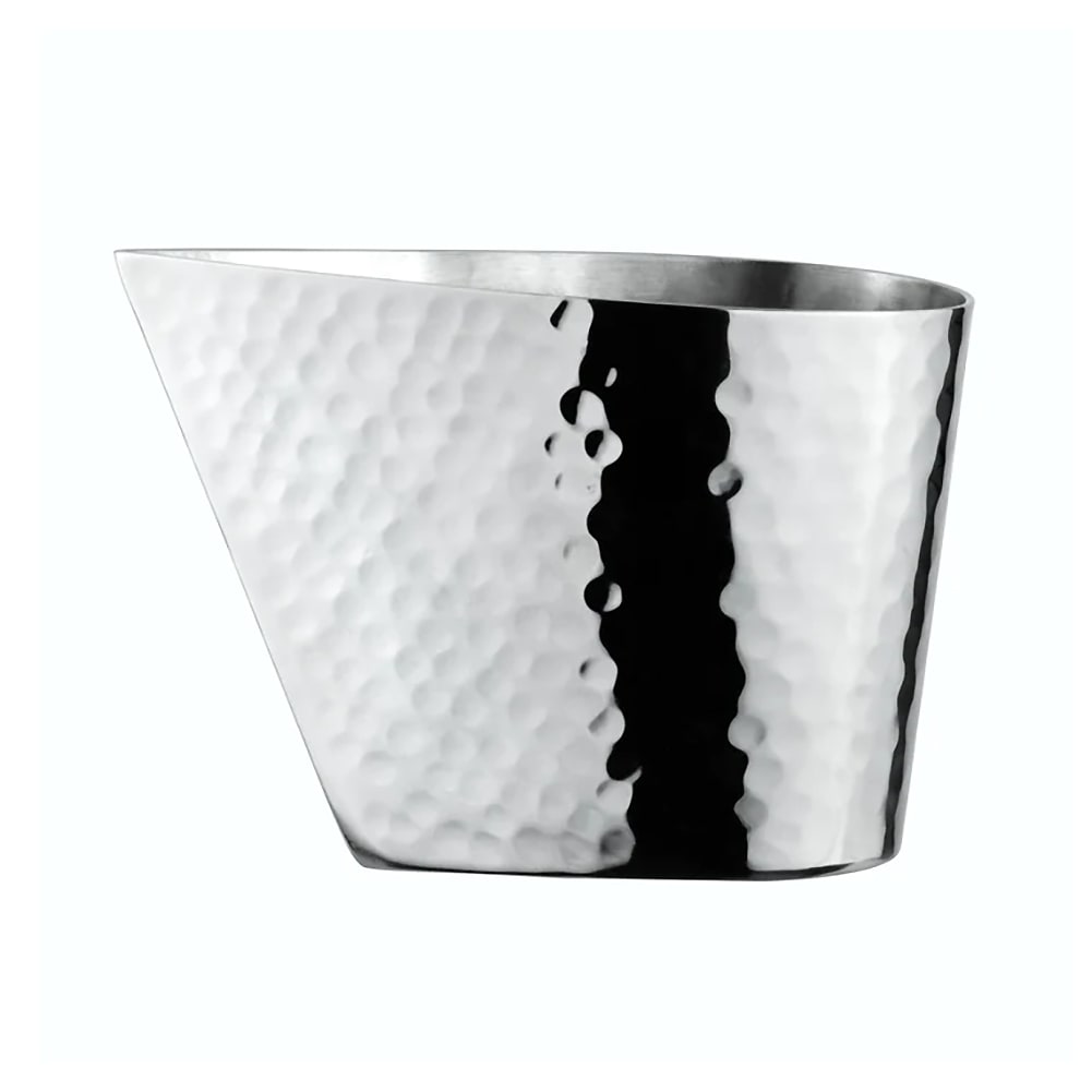 You will see no fingerprints on the D.W. Haber hammered, stainless steel teardrop creamer.