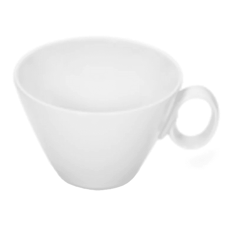 This 13.5 ounce low cup is part of the Coffeelings Collection and features a slender body and loop-shaped, curved handle that not only impresses with its appearance, but also makes coffee or tea taste especially delicious. Durable and beautiful, this porcelain tableware is a true classic.
