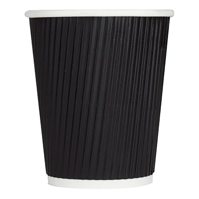 This 8-ounce ripple paper hot cup in black offers a stylish and functional solution for serving hot drinks. Featuring double poly lining, it prevents leaks and enhances resilience. The rippled texture provides insulation and a secure grip, eliminating the need for additional cup sleeves.