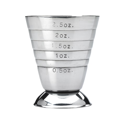 This Barfly® Bar Measuring Cup is a versatile tool designed for precise measurements in the bar. With a 2.5 oz. (5 tbsp./7.5 ml) capacity, it features scored internal marking lines and a footed base for stability, making it ideal for crafting perfectly balanced mixed drinks.