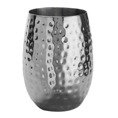 This 14 ounce mule cup features a mirror finish and the hammered design will be sure to make a splash at the bar! This durable cup also features double-wall stainless steel construction and is perfect for use with a variety of beverages.