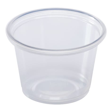 These tall 1 ounce plastic portion cups are ideal for dispensing small portions of condiments and dressings or to use as sampler cups.