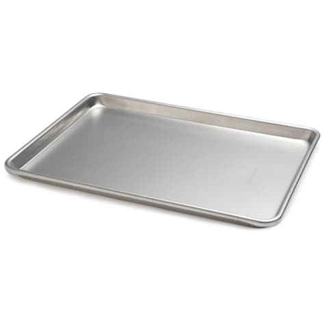 These Darling 18" by 26" aluminum sheet pans are closed beaded to help eliminate gaps where food and rust can accumulate. Also dishwasher safe for easy clean‐up.