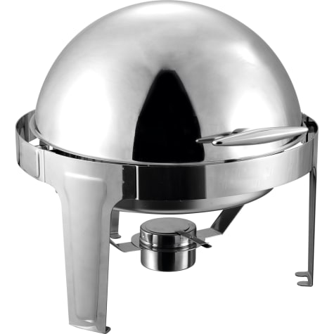 This Darling chafer will add beauty to your serving table and the food you are serving. For easy service, this rolltop chafer features a roll top that has the ability to open or retract at any position up to 180°. It has a modern design that is perfect for casual and formal settings. Made of 18/8 stainless steel with highly polished mirror finish dome covers. Includes food pan, water pan, and fuel holder.