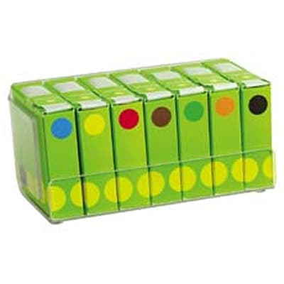 This cold temperature label kit from DayDots is ideal for aggressive adhesion in cold temperatures. This kit includes a dispenser keeper for all 7 boxes of labels. Each box consists of 1000 labels of different colors.