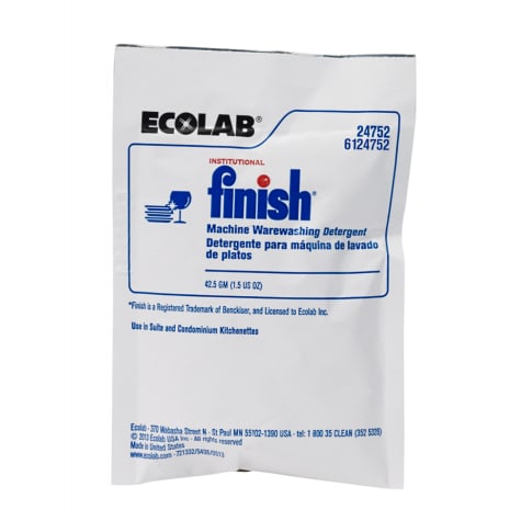 This Ecolab dishwashing detergent comes in 1.5 ounce packets. Recommended for use in homestyle or under counter dish machines.