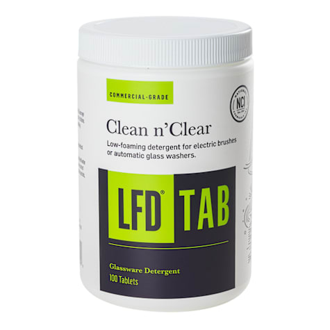 Easy to use detergent tablet dissolves in cold, warm, hot water. Cuts through grease and lipstick, and rinses clean. Low sudsing formula for use with electric brush systems. Leaves no residue, taste, or odor behind that could affect the carbonation and foam in beverages. Built-in water conditioners - no additional mineral solvents needed.