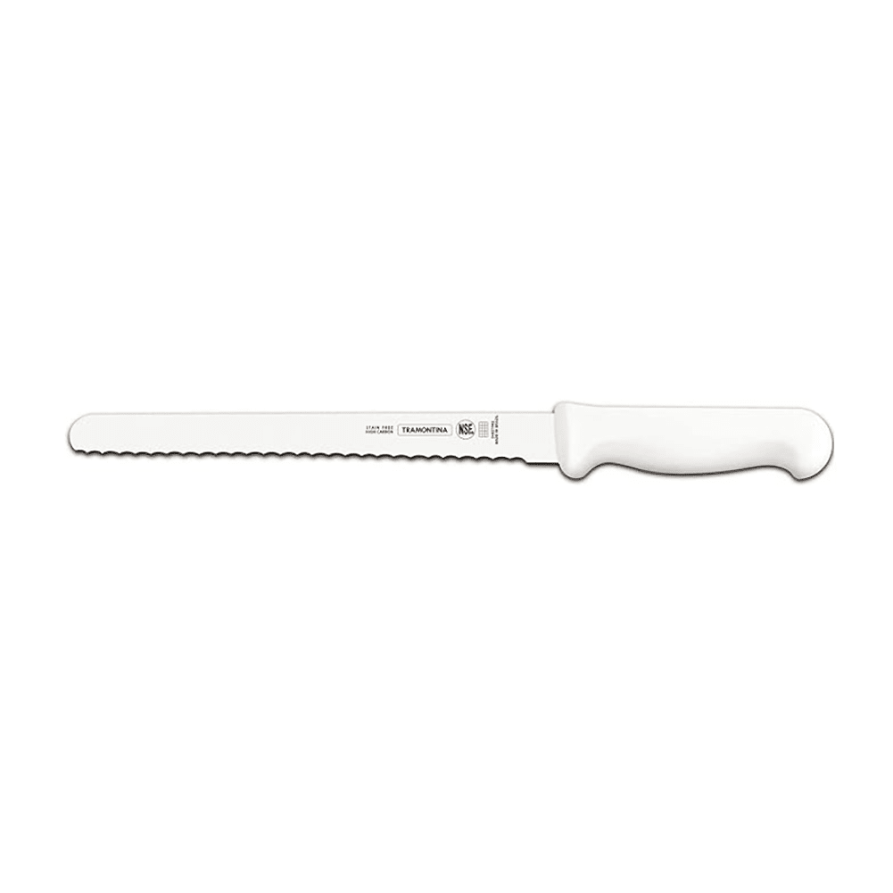 This Scalloped Slicer Knife is just what you need to slice through all that bread and the bread will still hold it's shape. The durable, white handle is slip resistant.