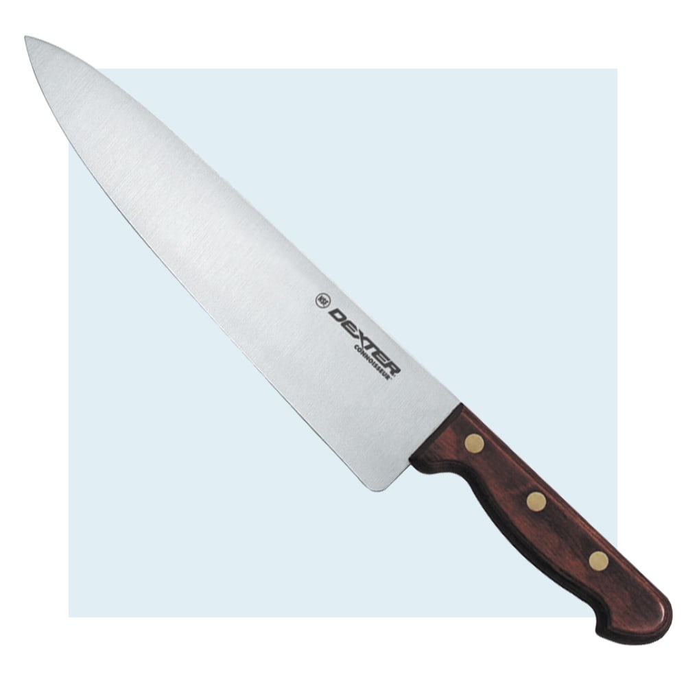 Designed for executive chefs and “front-of-the-house” use in the finest restaurants, hotels, and other institutions. Combines premium materials with Dexter's expert craftsmanship. Sanitary engineered rosewood handle, impregnated with polymers and resins, provides warmth, durability, balance, and stain resistance. Stain-free, high-carbon steel blade is individually ground to the ultimate edge. Made in USA.