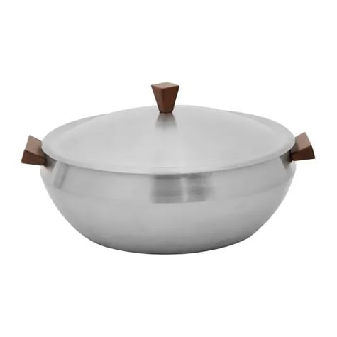 This Wynwood by Skyra™ 2.5 quart round induction buffet server includes an insert and features brushed stainless steel construction & hydro dip woodgrain coated components.