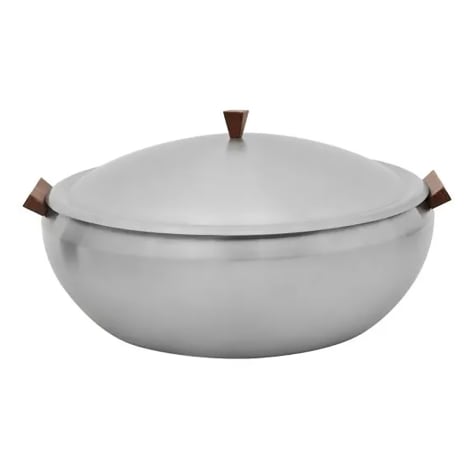 This Wynwood by Skyra™ 9 quart round induction buffet server includes an insert and features brushed stainless steel construction & hydro dip woodgrain coated components.