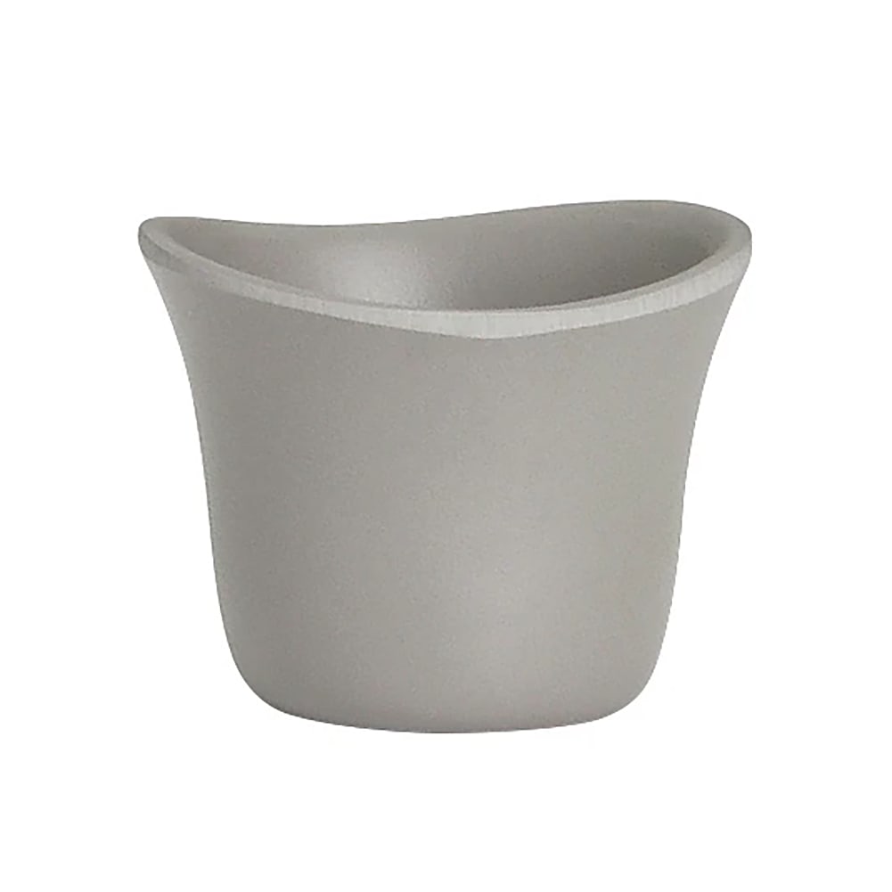 The Delfin 7006DD019 is a 1.5 oz. melamine sauce dish in a sleek driftwood gray, perfect for serving small portions of sauces, dips, or condiments. Its break-resistant, BPA-free construction and organic design make it a durable and stylish addition to any dining setting.