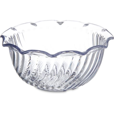 This 8 ounce clear tulip bowl from Carlisle® features a stylish design that is perfect for serving ice cream, salads, fruits, desserts and more! It is made of break-resistant SAN plastic and is resistant to staining, breaking and chipping.