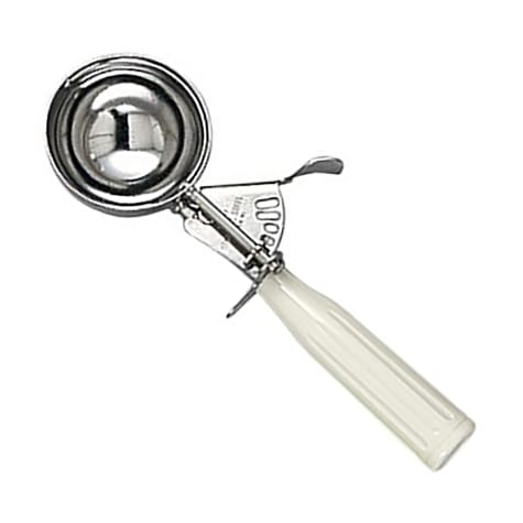 This 3.45 ounce disher from Browne Foodservice features a full loop release bar for easy use and a ribbed plastic handle for sure grip.