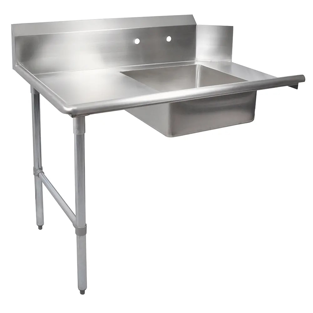 Use this John Boos right‐to‐left 60" dish table at the end of a dishwasher to accept clean dishes. Made of durable stainless steel with a 10" backsplash and rolled rim to help keep floors dry.
