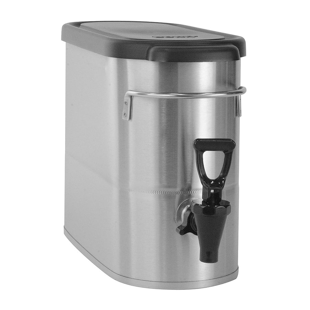 This narrow, space-saving iced tea dispenser from Bunn features a low profile design that fits into height-restricted layouts and is more manageable to transport. The front - back handles maximizes counter space usage and the built in back lower handle allows for easy emptying and cleaning.