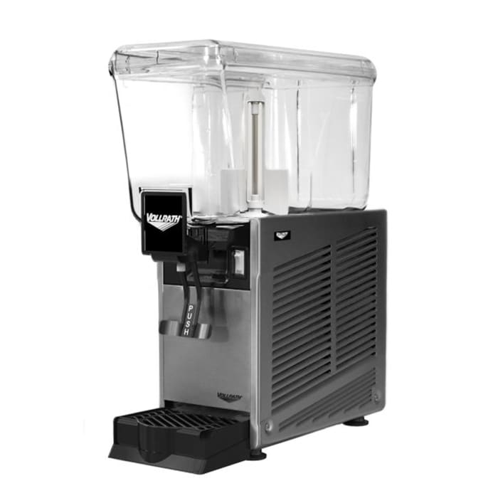 Keep your most popular drink offerings cold, fresh and on display with the Vollrath® refrigerated beverage dispenser. The clear polycarbonate bowl keeps your product visible, allowing it to catch your customer’s eye. The bowl has a thermostat that easily holds your pre-mixed cold beverage at a perfect serving temperature, while the stirring paddle circulates the product to ensure exceptional consistency and quality. With a stainless steel drip-free spigot and a plastic drip tray to contain liquid in the case of accidental spills, your counters will always stay clean. The durable stainless steel cabinet and polycarbonate food-grade bowl promise years of reliable service, and the easily-removed bowl and dispensing handles allow for quick clean up.