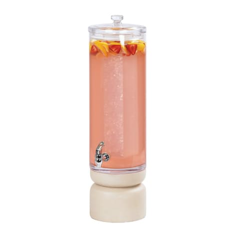 The Cal-Mil 22441-3-113 is a 3-gallon beverage dispenser from the Newport collection. It features a clear acrylic container and a white-washed pine wood base. This dispenser includes an ice chamber to keep beverages chilled without dilution and an elevated spigot for easy pouring. Measuring 7.5" x 10" x 29", it adds a touch of elegance to any event.