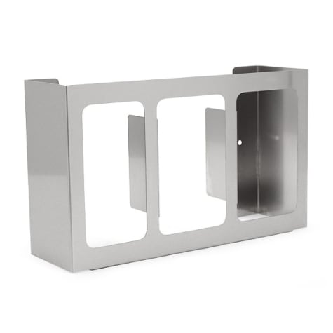 This wall-mount glove dispenser from John Boos features 18 gauge type 300 stainless steel constructions with #4 polish satin finish. It mounts securely to the wall vertically or horizontally and holds most standard sized boxes of tissue, masks or gloves.