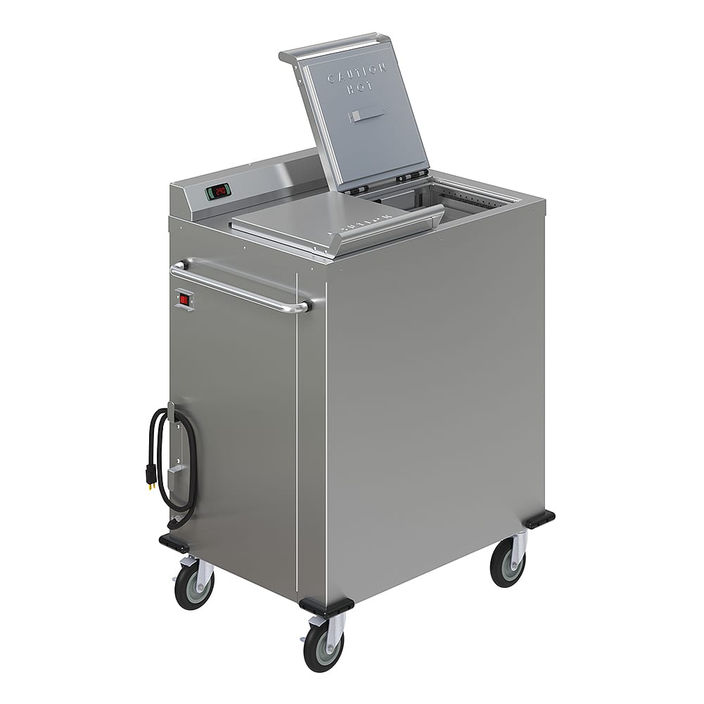 The Colossus Heated Plate Dispenser is designed for heating china plates to 180°F and wax bases at 300°F in less than two hours. It's ideal for heating plates and bases to maintain hot food temperatures during delivery in conjunction with the Dinex Induction Heating System.