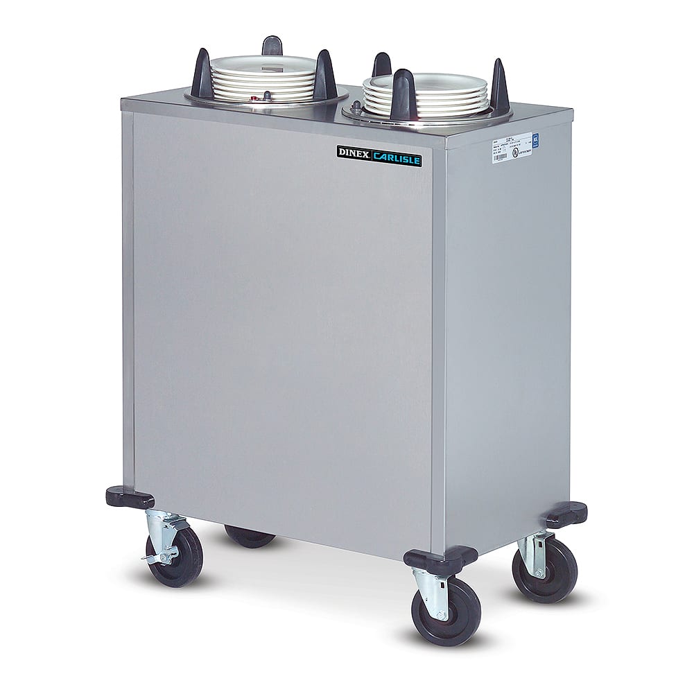 This Carlisle plate dispenser features two silo‐like openings that are self‐leveling to push bowls and plates upwards. This durable unit includes casters so it's easy to move about.