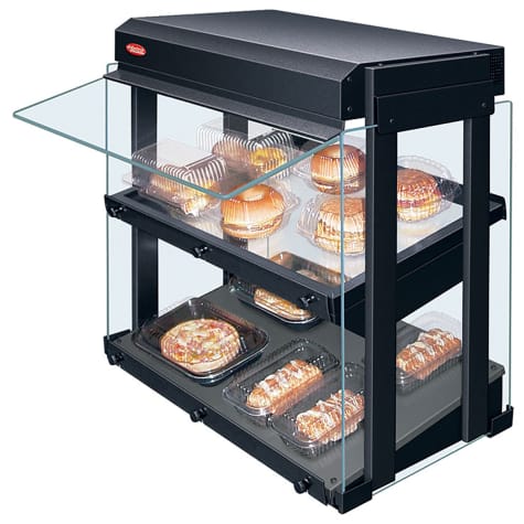 The Hatco GRHW-1SGDS Glo-Ray® Heated Glass Mini-Merchandiser features a thermostatically-controlled heated base and overhead infrared heating elements to hold an array of food products at preferred serving temperatures. It's perfect for packaged products at any time of the day. Great for delis, supermarkets, convenience stores, kiosks or concession stands.