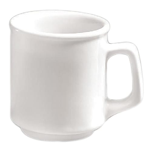 This Diversified Ceramic Beaumont Mug has a 9 Oz. capacity and is made from vitrified china, which is oven and microwave safe. It comes in an ultra white color.