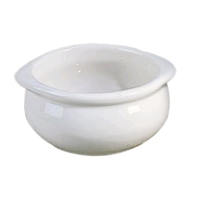This white 10 ounce bowl is great for serving piping hot onion soup. We have a large selection of soup bowls to fit your every need. Our bowls are made of vitrified china, extremely durable and lead free.