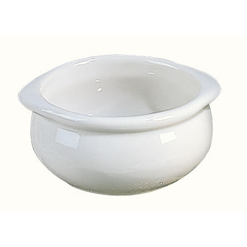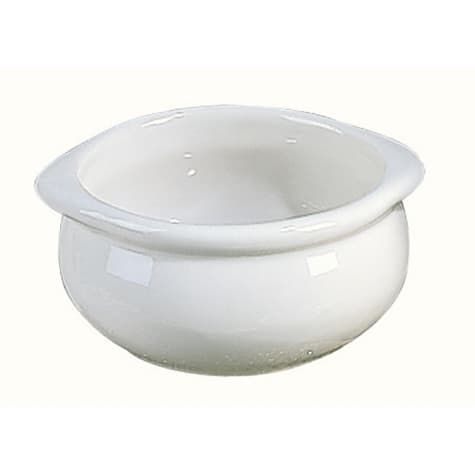 This white 12 ounce bowl is great for serving piping hot onion soup. We have a large selection of soup bowls to fit your every need. Our bowls are made of vitrified china, extremely durable and lead free.