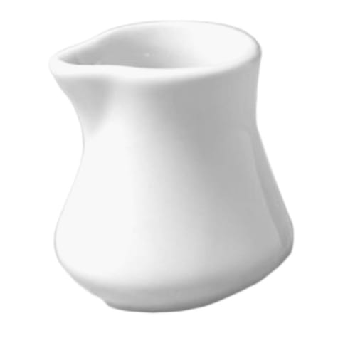 This Diversified Ceramics Carafe Creamer comes in an ultra white color and has a 1.25 ounce capacity, perfect for coffee or tea service. It is made from vitrified china, which is oven and microwave safe.
