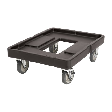 This Cambro CamDolly holds up to 300 pounds and has rounded edges to protect walls from damage. The casters are bolted onto steel plates for durability and 2 casters are swivel for easy maneuverability.