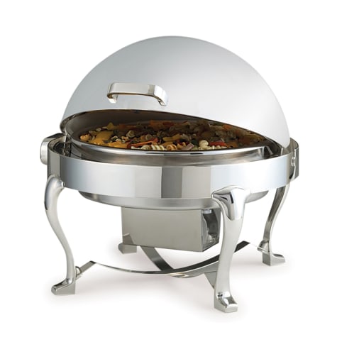 This D. W. Haber & Son Millennium chafer has a balanced cover that stops in any position and never slams back. It has a beautiful polished stainless steel finish.