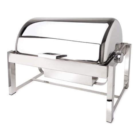 This beautiful roll top chafer from Eastern Tabletop is part of the Pillard P2 Collection. It features an elegant dome cover that provides a high profile look and is designed in heavy‐duty stainless steel. This 8 Quart chafing dish includes a convenient shelf to place gel chafing fuel holder and the non‐skid rubber end legs provide stability. Perfect for buffets or catered events!