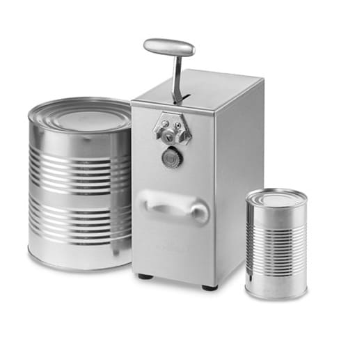 This Edlund 203 table top electric can opener is perfect for the restaurant or kitchen that opens 4‐7 cans per minute and up to 75 cans daily. This two speed electric can opener features durable stainless steel housing and has a spring‐loaded cutting mechanism that will allow it to open even dented cans. The cans slide to opener and lock into place for quick and easy opening.