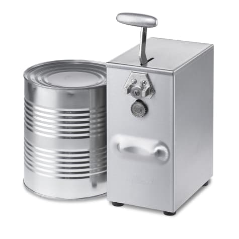 This Edlund table top electric can opener is perfect for the restaurant or kitchen that opens 4‐7 cans per minute and up to 75 cans daily. This single speed electric can opener features durable stainless steel housing and has a spring‐loaded cutting mechanism that will allow it to open even dented cans. The cans slide to opener and lock into place for quick and easy opening.