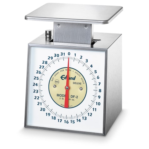 This is Edlund's most popular line of all stainless portion control scales. The newly designed all stainless steel construction allows for dishwasher safe cleaning without the need to disassemble the scale. The DF‐2 fixed dial standard mechanical scale is part of the Premier Series. The DF‐2 comes with a 6" x 6‐3/4" stainless steel platform with a capacity of 32 oz x 1/4 oz.