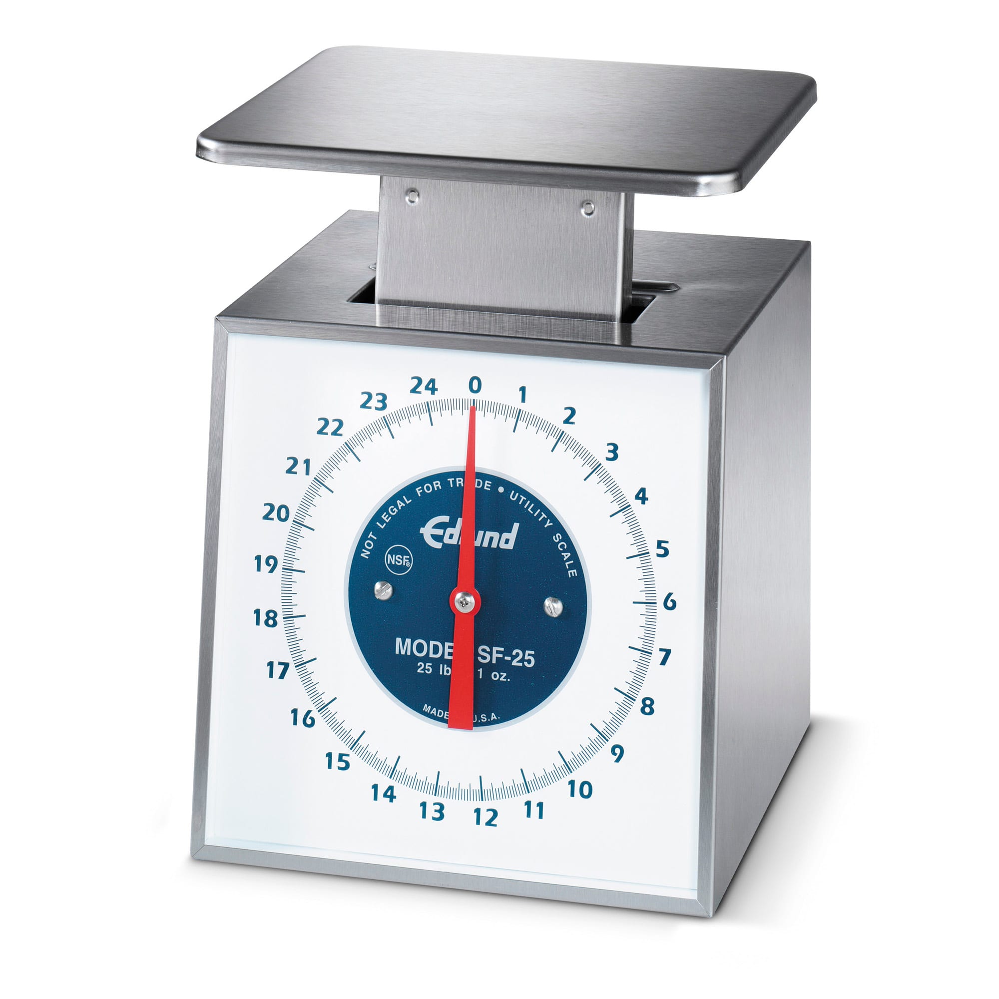 This is Edlund's most popular line of all stainless portion control scales have features that no import scale can match. The newly designed all stainless steel construction allows for dishwasher safe cleaning without the need to disassemble the scale. The SF‐25 fixed dial standard mechanical scale is part of the Premier Series. The SF‐25 comes with a 6" x 6‐3/4" stainless steel platform with a capacity of 25lbs x 4oz.