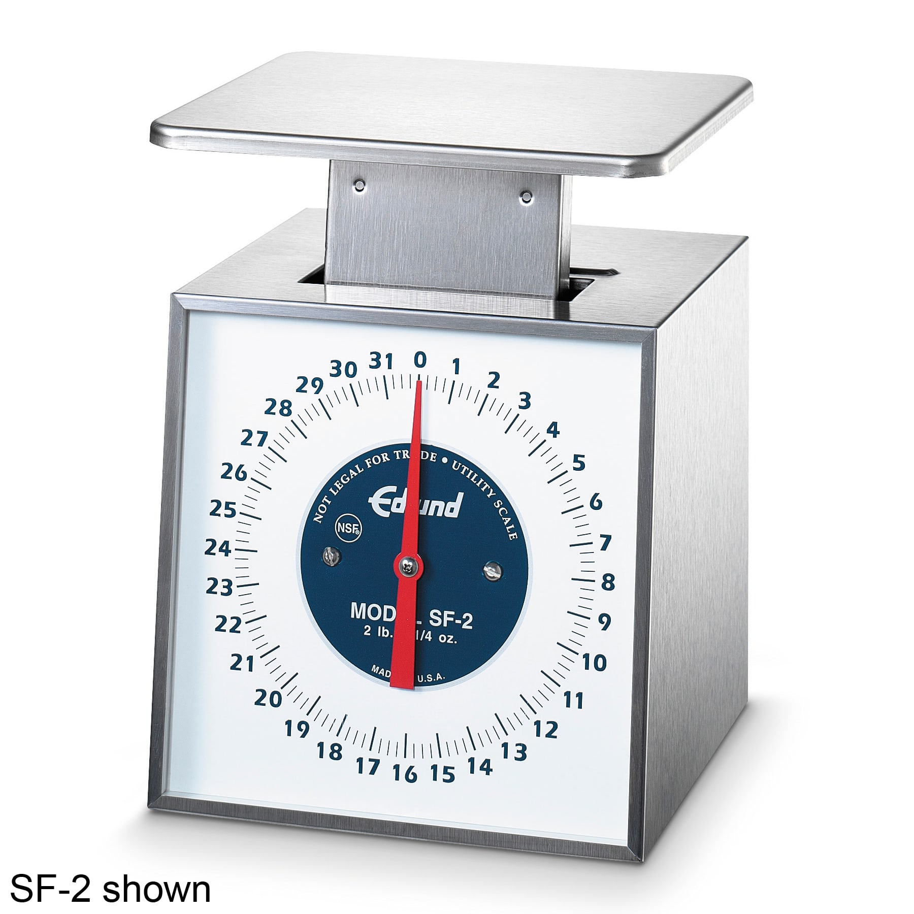 The Edlund SF‐5 fixed dial standard mechanical scale is part of the Premier Series NSF dishwasher safe portion scales. The SF‐5 comes with a 6" x 6‐3/4" stainless steel platform with a capacity of 5lbs x 1oz.